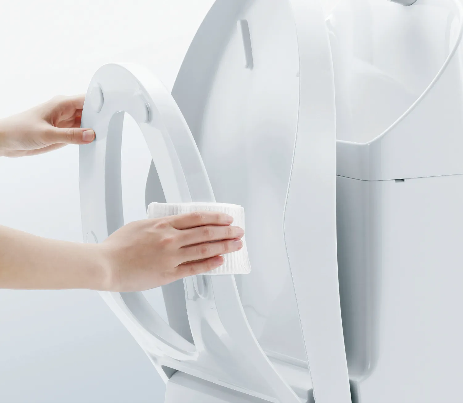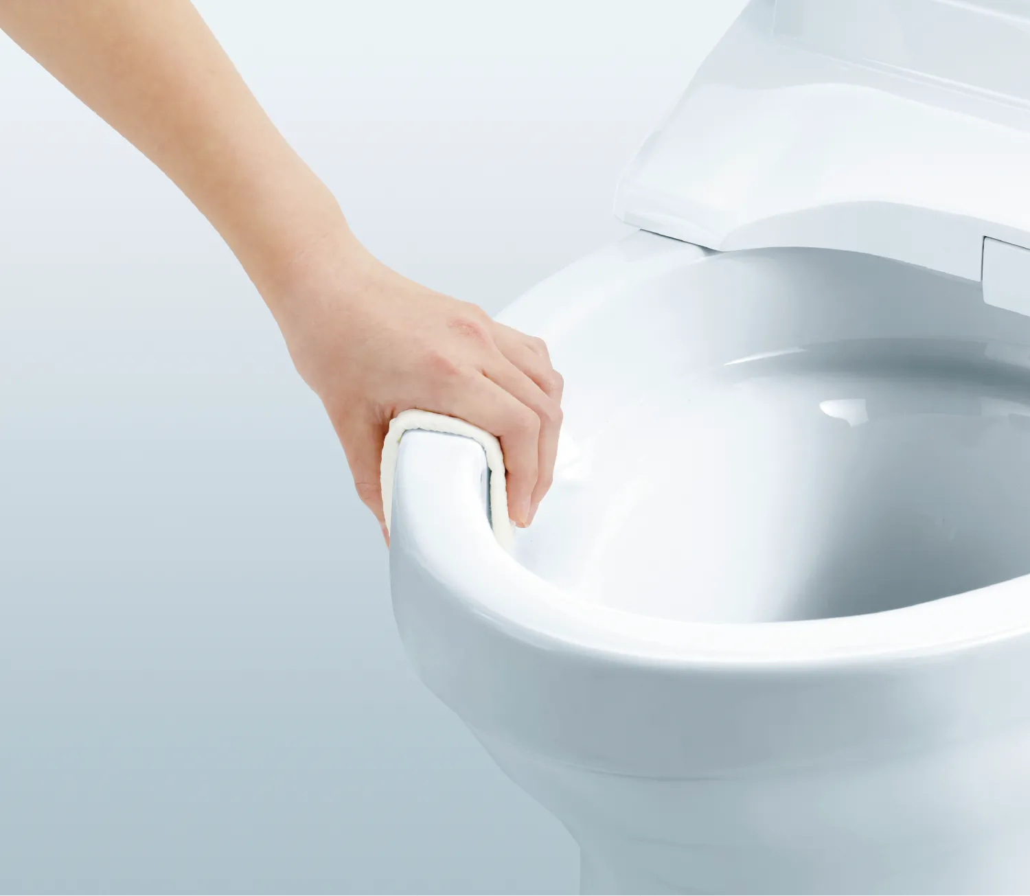 便器とウォシュレットの段差やすき間を極力抑えたクリーンデザインでお掃除も簡単。空間もすっきりとした印象に整います。