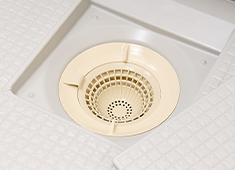 特殊パターンが水を吸い込むように排水。翌朝にはカラリと乾き、お掃除もラクラクです。