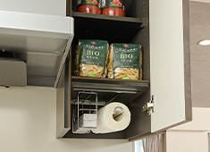 地震の際、扉が開いて物が落下するのを防ぐ、耐震ラッチ付吊戸棚を採用し安全性を高めています。