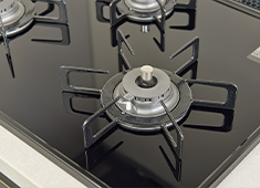 熱に強くお手入れも簡単でデザイン性にも優れたガラストップを採用。美しいキッチンを演出します。