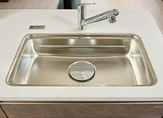 カウンタートップは人造大理石を採用。美しく高級感があり、お手入れも簡単です。