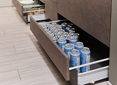 収納スペースの奥まで無駄なく使えるスライド収納を採用。重い物を入れてもスムーズに引き出せます。