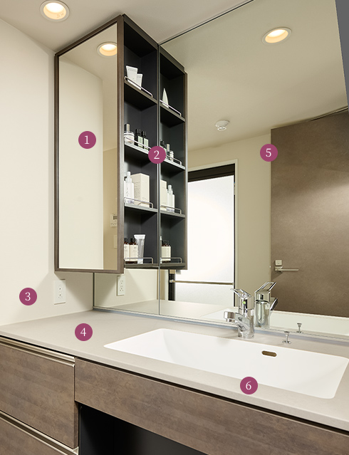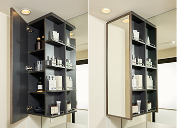 - 1手前で見やすく奥行も確保したミラーキャビネット