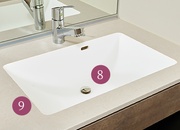 - 8汚れがたまりにくい排水口採用の洗面ボウル