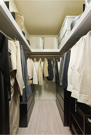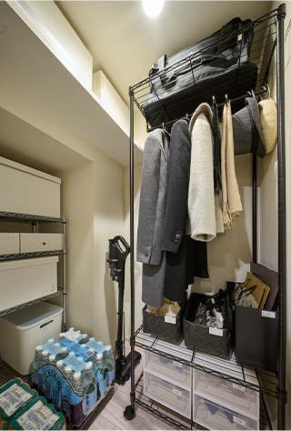 清掃道具や日用品のストックなどの収納に便利。居住スペースを広く美しく保てます。※一部タイプ除く。