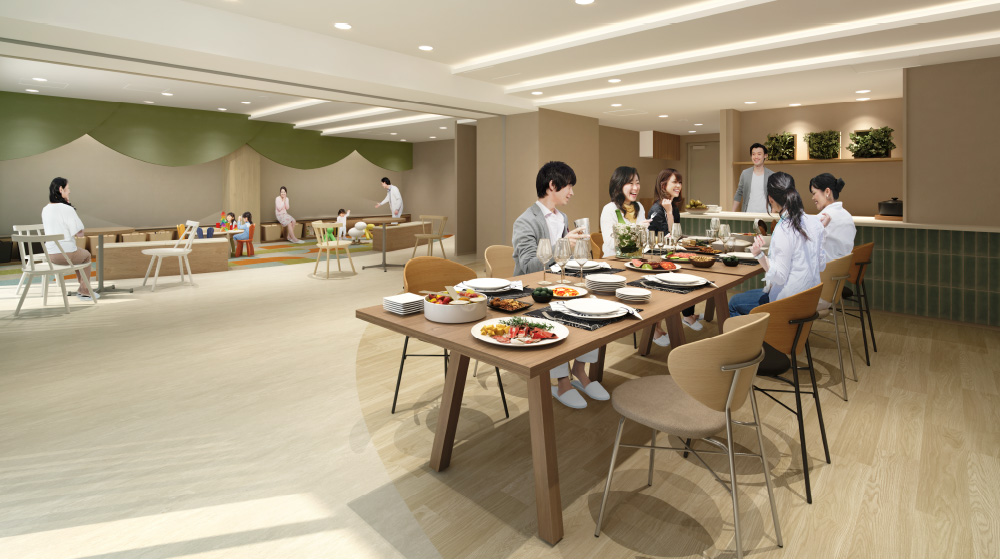 キッチンと大きなテーブルを囲みながら、ご近所同士やご友人たちとにぎやかに過ごせる空間。ホームパーティーから季節イベントまで、多彩な交流がここから広がります。