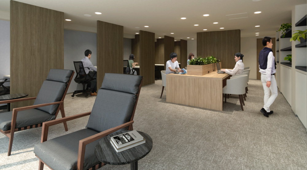 集中したいときも、一息つきたいときも、そっと寄り添うフォーカスルーム。半個室も備え、仕事や勉強、新聞講読、編み物などの趣味の時間にも。集中とリラックスが両立する“自分時間”に寄り添います。