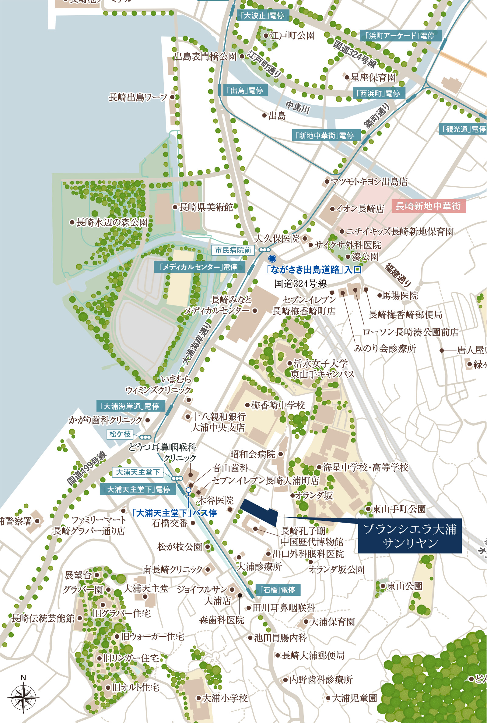 「長崎県美術館」などの施設が徒歩圏に点在。