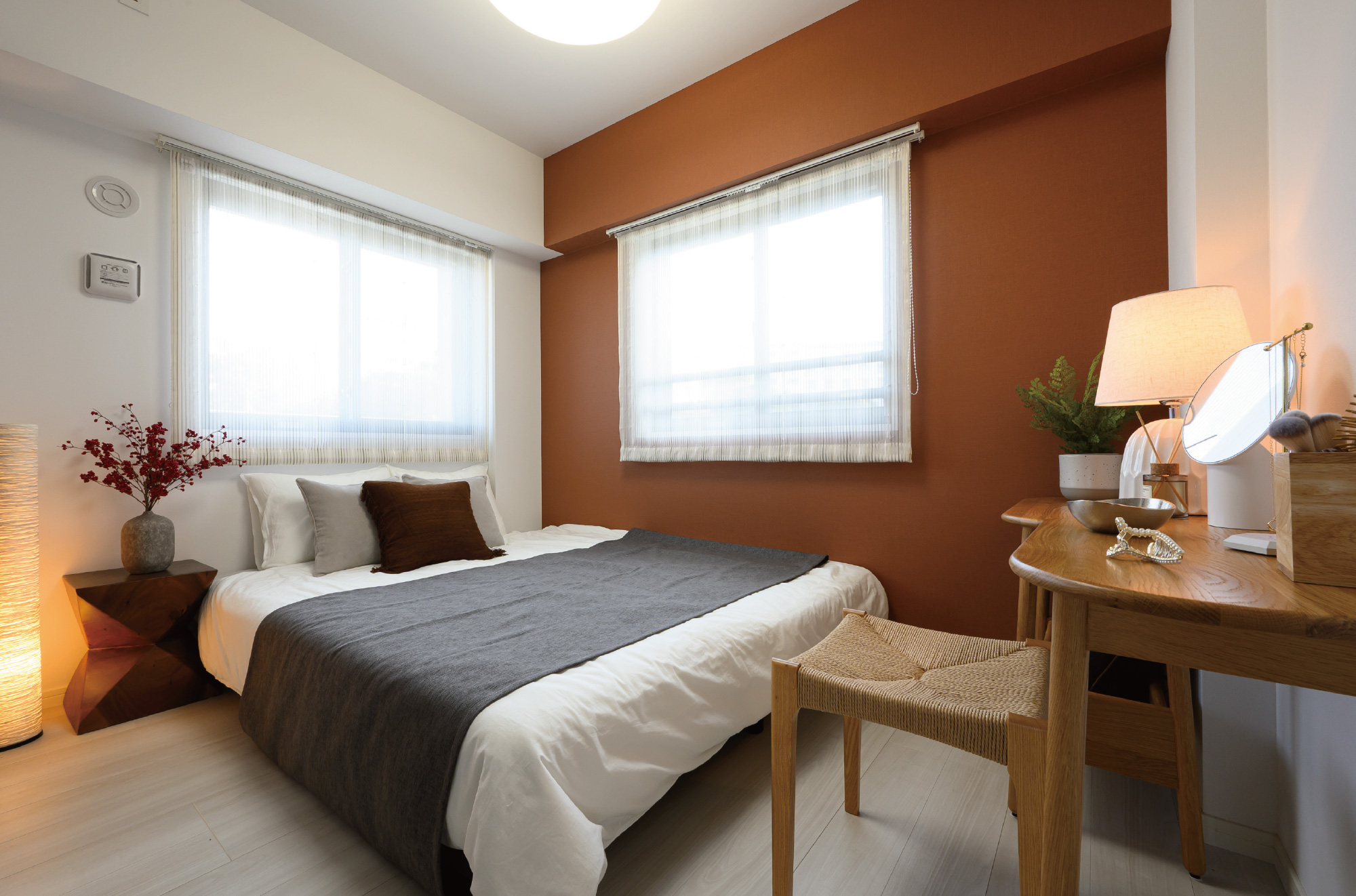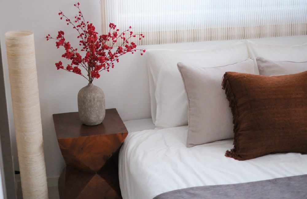 一日の余韻を静かに受け止める、プライベートなベッドルーム。