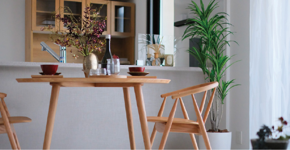 家族が集い、食事や会話を楽しむリビング・ダイニング。