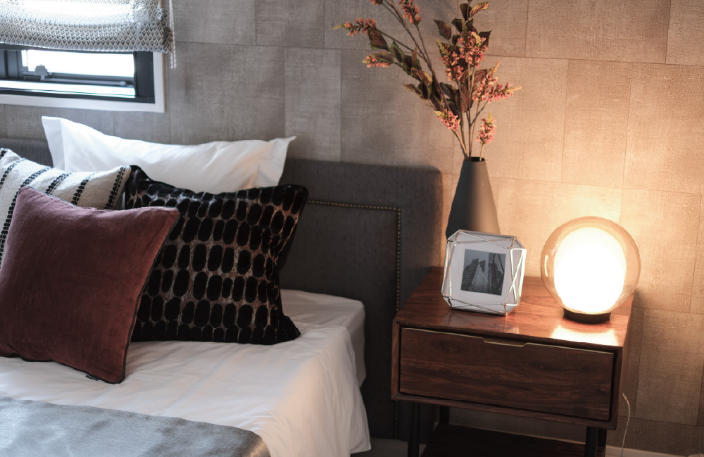 一日を切り替えるための、静かなベッドルーム。