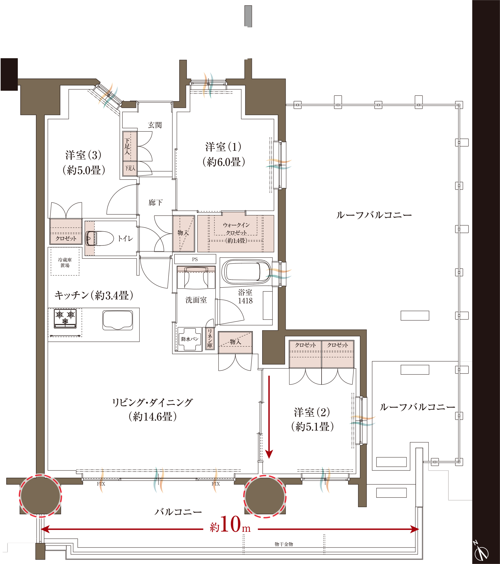 タイプ、居室によって形状が異なります。WIC/ウォークインクロゼット WTC/ウォークスルークロゼット SIC/シューズインクロゼット N/納戸 UC/ウゴクロ MC/マルチクロゼット DC/土間クロゼット