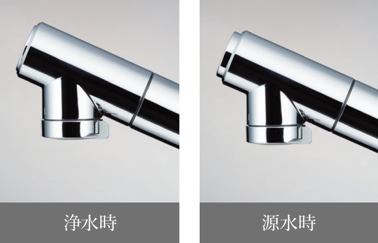 蛇口先端のボタンを押すだけ、簡単に浄水/原水が切り替わります。