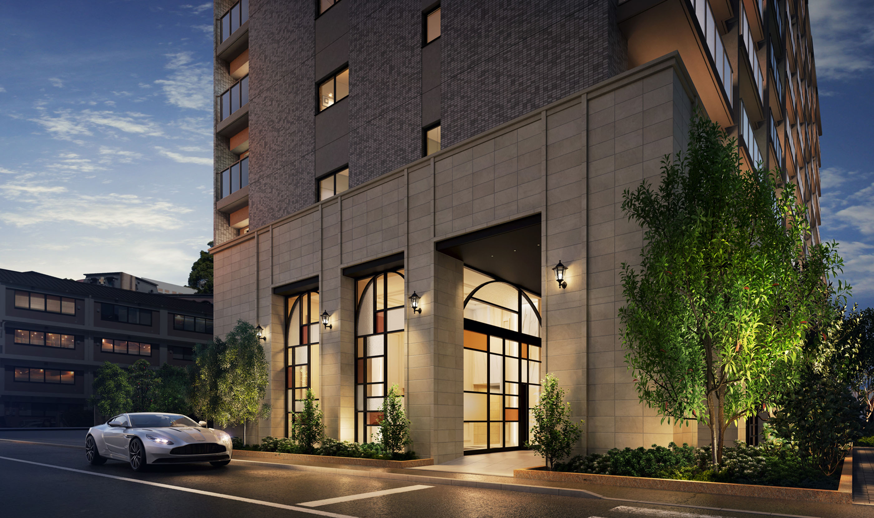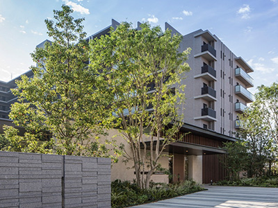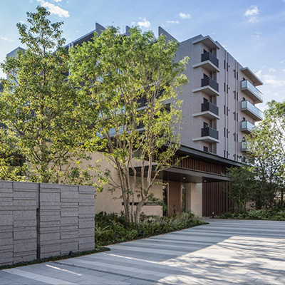 キャノピー付きの車寄せや豊富な植栽、歩車分離など、都市居住の快適と安心を高める敷地計画としました。