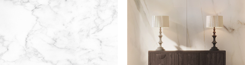 大理石調の壁面やデザインパターンの床で、エキゾチック・モダンなインテリアを演出しています。