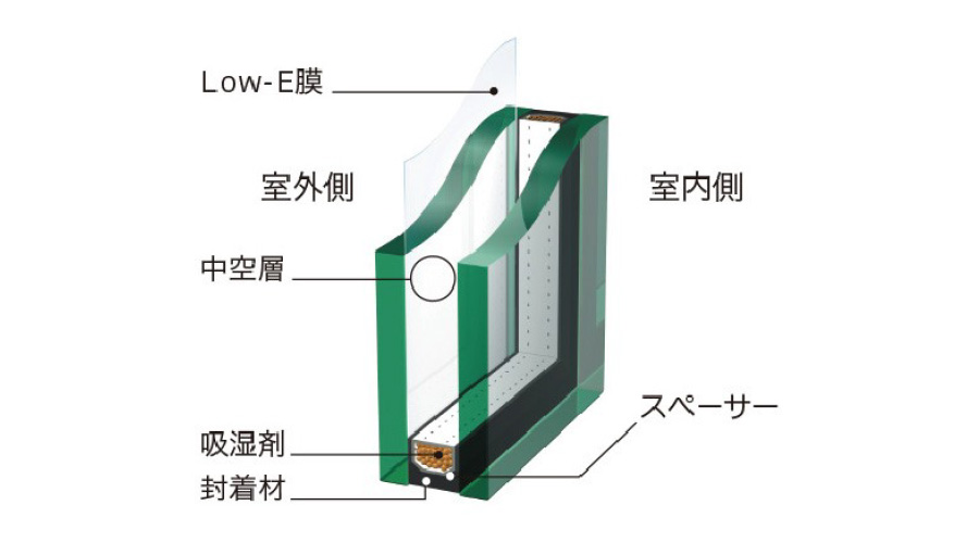 封入し、さらに特殊な金属膜(Low-E膜)を施したもので、夏は