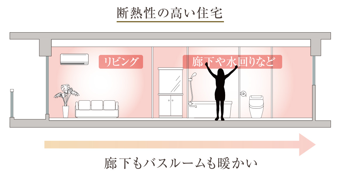 高い断熱性能により、部屋間の温度差が縮小し、