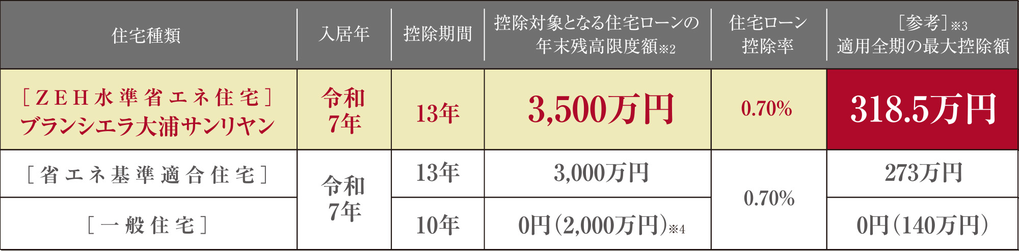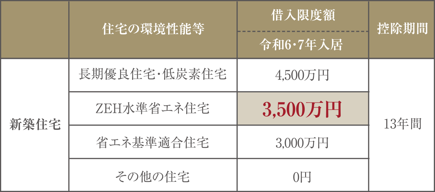 ※4:一般の新築住宅のうち、令和5年12月31日までの建築確認を受けたもの、または令和6年6月30日までに建築されたものは、借入限度額を2,000万円として10年間の控除が受けられます。