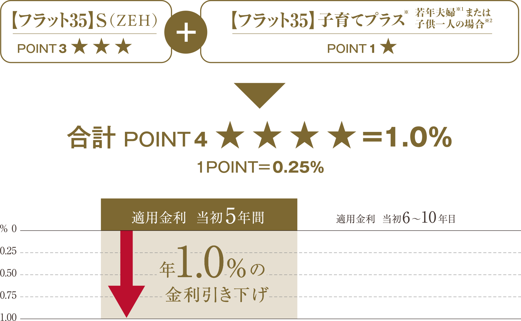 1ポイント=5年間年0.25%の引き下げとなります。