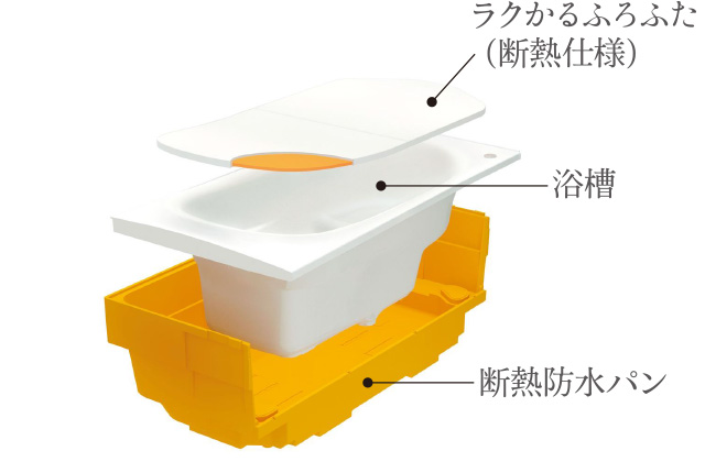 断熱材をフタと防水パンに使用することで高い保温性が実現。お湯が冷めにくいことで、追い焚き回数が減り、経済的で環境にも優しい保温浴槽を採用しています。