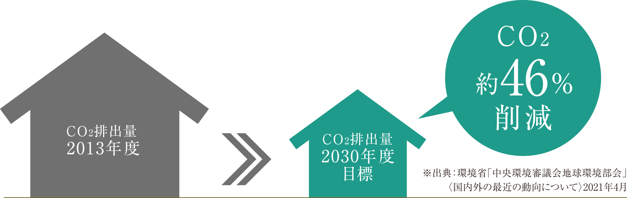 2030年までに2013年度比で46%の削減を目指します。