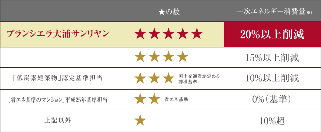 ※1:表示の一次エネルギー消費量は、☆☆に対しての増減割合となります。※出典:日本ERI株式会社「建築物省エネルギー性能表示制度のご案内」