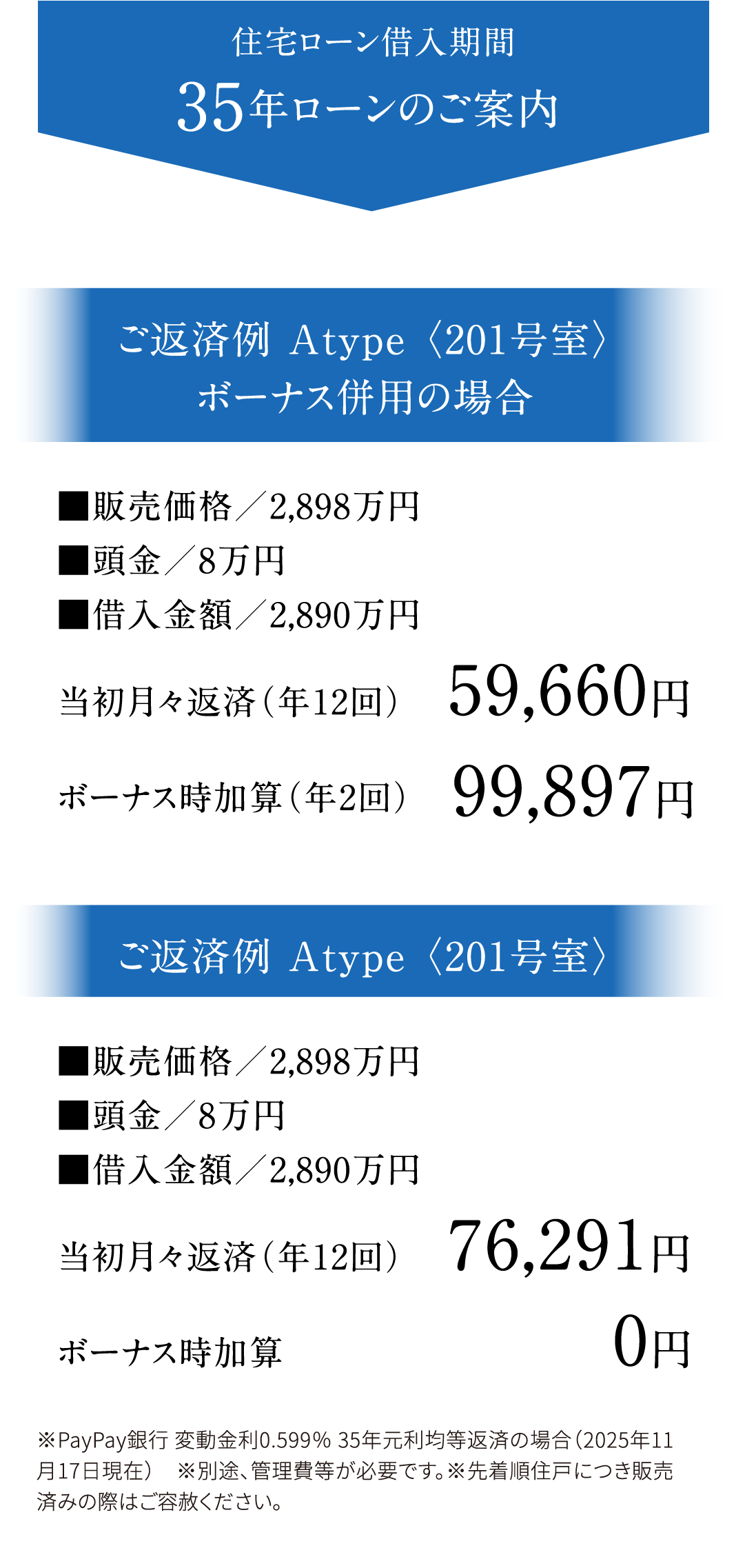 ※PayPay銀行 変動金利0.599% 35年元利均等返済の場合(2025年11月17日現在) ※別途、管理費等が必要です。