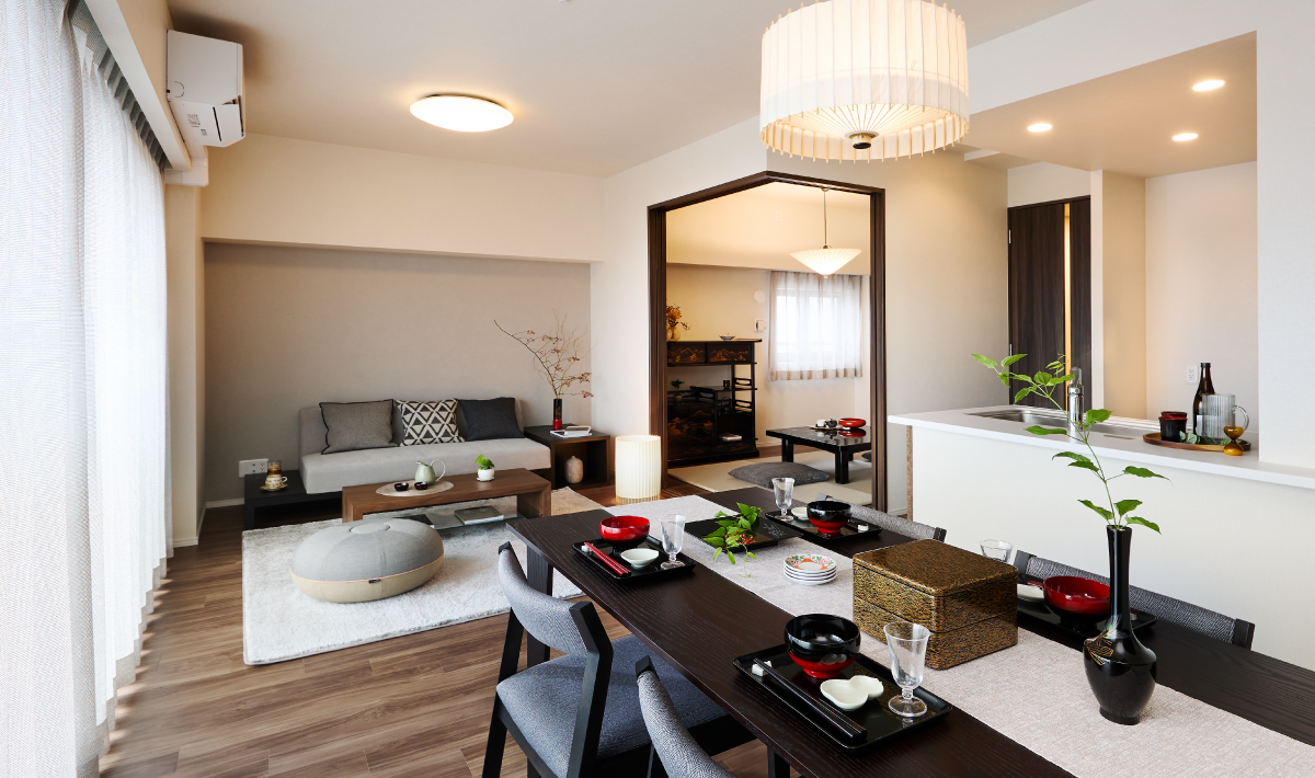 ※掲載の室内写真は棟内モデルルーム(Aタイプ)を2024年10月に撮影したものに一部CG加工を施しております。また、一部有償オプションが含まれており、家具・調度品等は販売価格に含まれておりません。 詳しくは係員にお尋ねください。