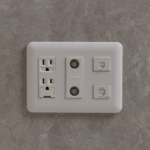 インターネット接続110°CS、BS端子に繋げられるコンセントパネルを設置しています。