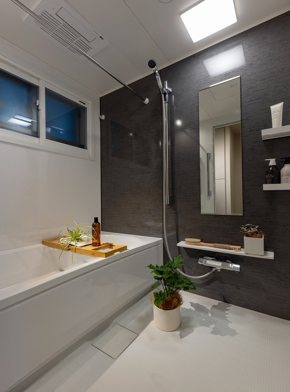 石けんやシャンプーなど、バスグッズの置場として役立ち、空間をすっきり使えます。