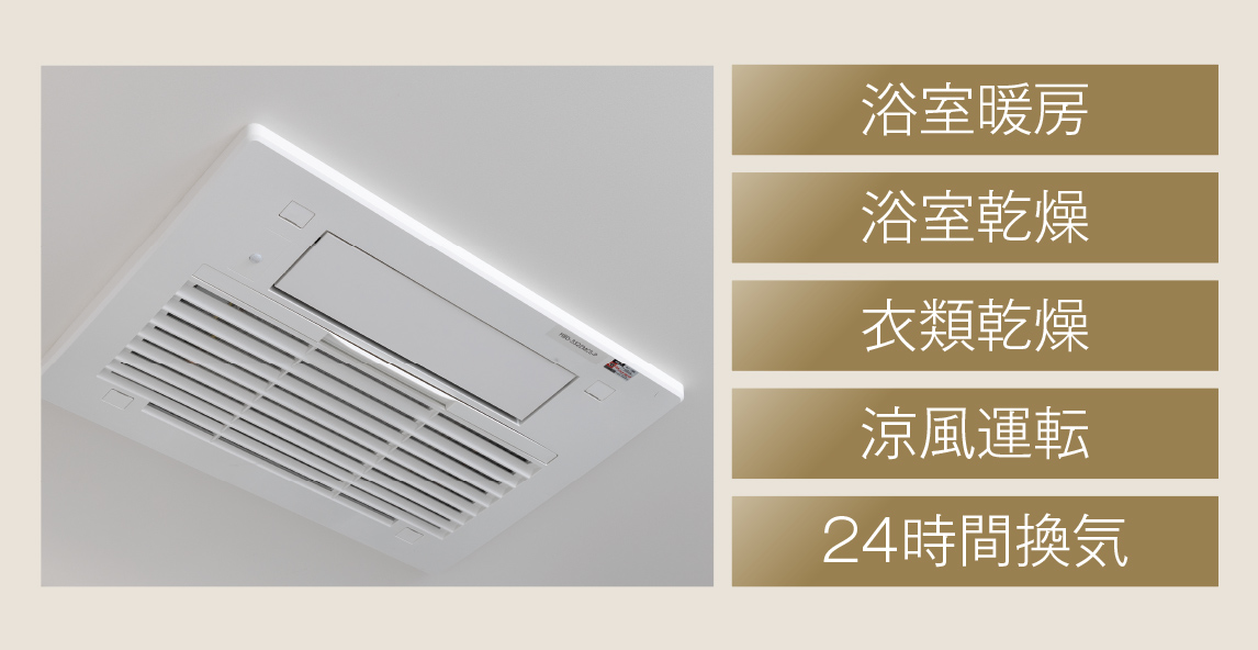 雨の日に便利な乾燥機能や浴室を温める予備暖房、24時間換気など多彩な機能を搭載しています。