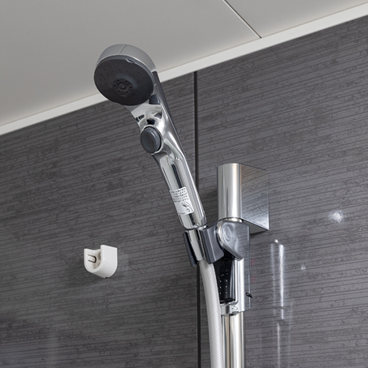 シャワーヘッドのボタンを押すだけで止水ができる節水仕様のシャワーヘッドです。
