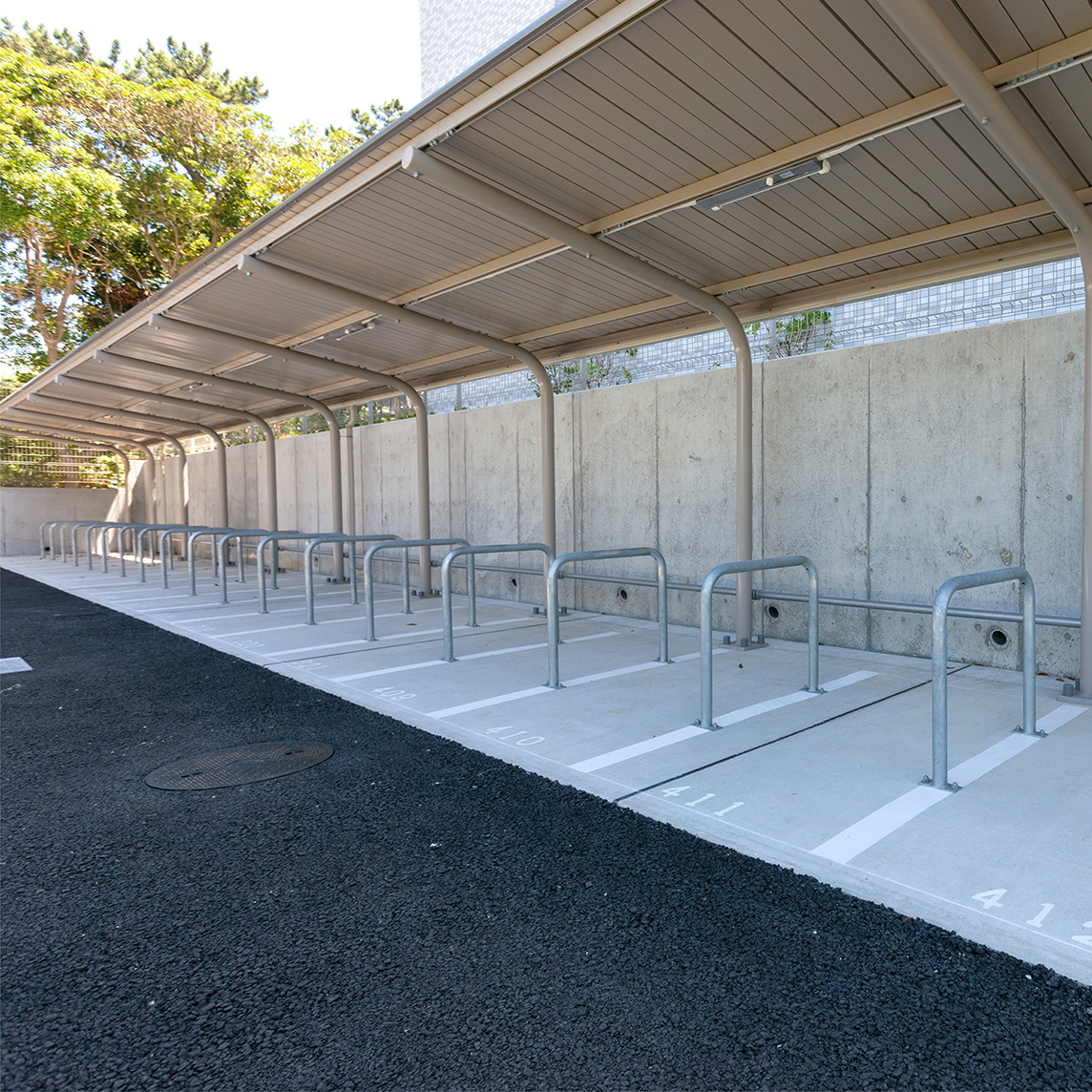 大人用自転車、子供用自転車、三輪車が置けるサイクルポート区画を9区画設置。