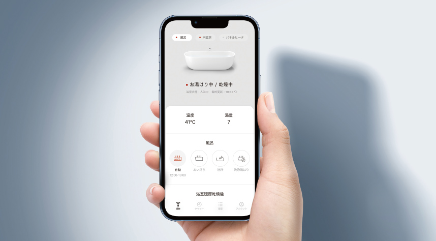 外出先からも、家のどの部屋からも。アプリを使えば、どこにいてもリンナイ製品を操作できます。お風呂を沸かしたり、床暖房をつけたり、いつでもワンタップで操作可能。