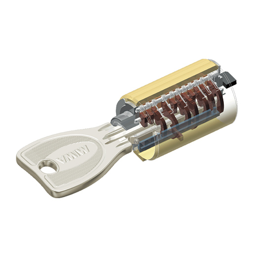 1,000億通りのキーパターンと、耐ピッキング性能を有した不正複製が困難なディンプルキーを採用。リバーシブルタイプなので操作も容易です。