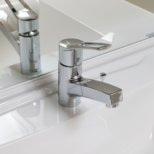 片手で水温・水量が簡単に調節できるシングルレバー混合水栓を採用しました。