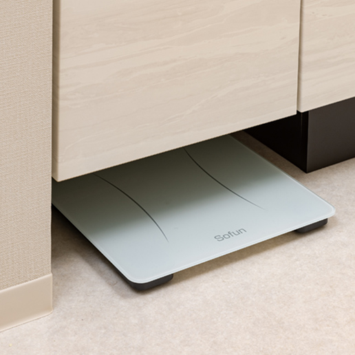 置き場に困るヘルスメーターをコンパクトに収納、使うときにすぐに取り出せます。
