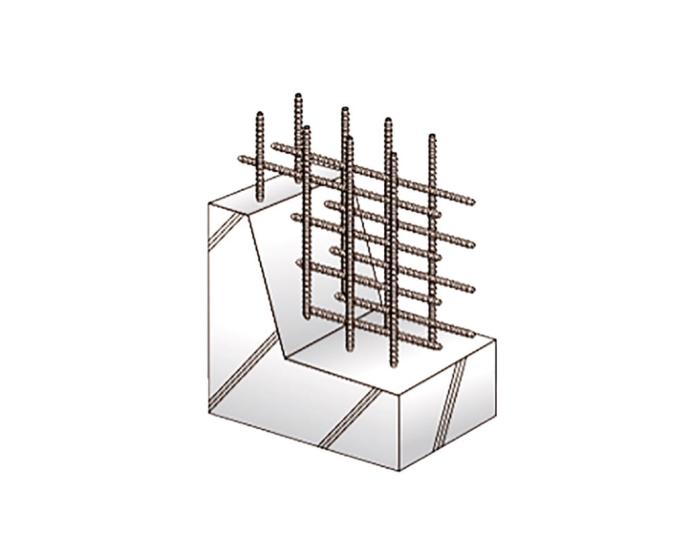 格子状に組んだ鉄筋を壁に2列に組み入れるダブル配筋で、耐久性に配慮しています。