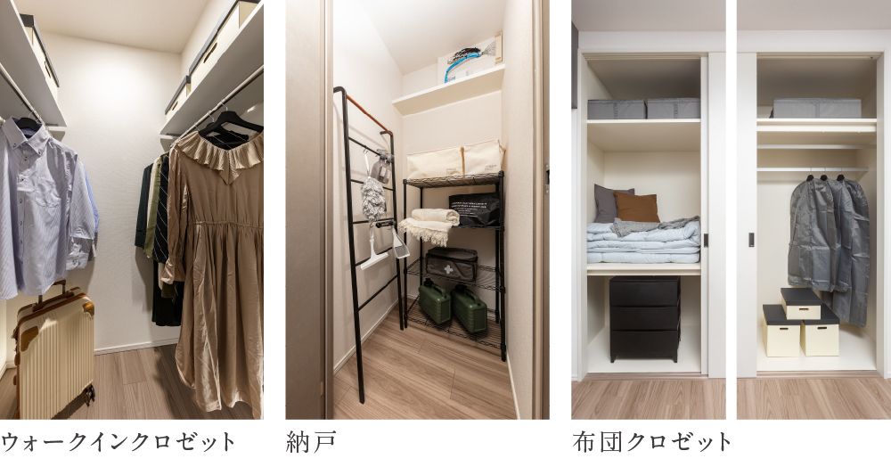 - 布団クロゼットやウォークインクロゼットなど豊富な収納をご用意。