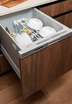 手洗いでは難しい約60℃のお湯でパワフルに除菌洗浄し、約80℃の温風で除菌乾燥します。水量は食器を手洗いした場合の約1/7。経済的で衛生的、環境にも優しい食器洗い乾燥機ならではの機能が充実しています。