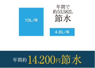 ※試算条件(2018年4月時点)/4人家族(男2人、女2人)が大1回/人・日、小3回/人・日使用した場合で算出。【引用元】省エネ・防犯住宅推進アプローチブック※水道料金=265(税込)円/㎥【引用元】(一社)日本バルブ工業会より※消費税率8%で試算※最上階プレミアム住戸は仕様が異なります。