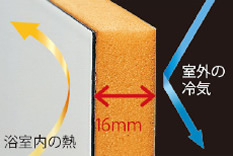 厚さ16mmの保温材と高品位ホーローで浴室を包むことで、冬場でもしっかりあたたかさをキープ。高い断熱性能はもちろん、耐久性にも優れています。