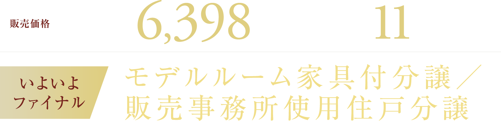 ●予定販売価格/6,398万円(Lタイプ/512号室)●頭金/638万円●借入額/5,760万円●月々返済/117,403円●ボーナス時返済/246,829 円●借入期間/40年●提携金融機関/PayPay銀行●返済方法/元利均等返済●借入金利/0.599%(店頭表示金利2.680%より2.081%引き下げ 2025年12月~2026年3月31日までに実行の場合)●融資期間/1年〜50年●融資手数料/ご利用金額の2.2%(消費税込)●ローン斡旋事務手数料/110,000円(消費税込)・(提携不動産会社分)※適用される金利は融資実行時の金利となり、表示されている金利・返済額と異なる場合があります。※借入申込資格及び融資条件など、詳しくは係員にお尋ねください。※掲載の融資条件および金利は2025年11月現在のものです。
