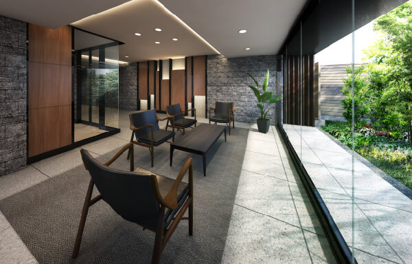 住まう方を迎えるエントランスは、気品のある美しさを追求。上質感のある大判タイルを採用し、都市から住まいの穏やかな時間へ導く空間としてデザイン。