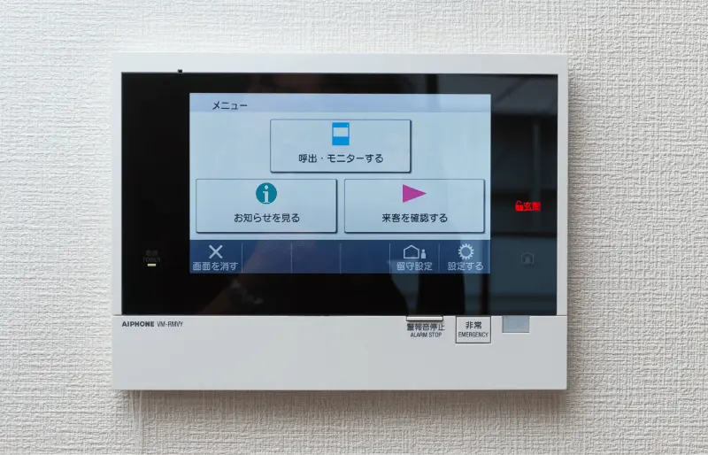 エントランスへの来訪者を住戸内から映像と音声で確認できるカラーモニター付インターホンを設置。機能的なハンズフリータイプです。