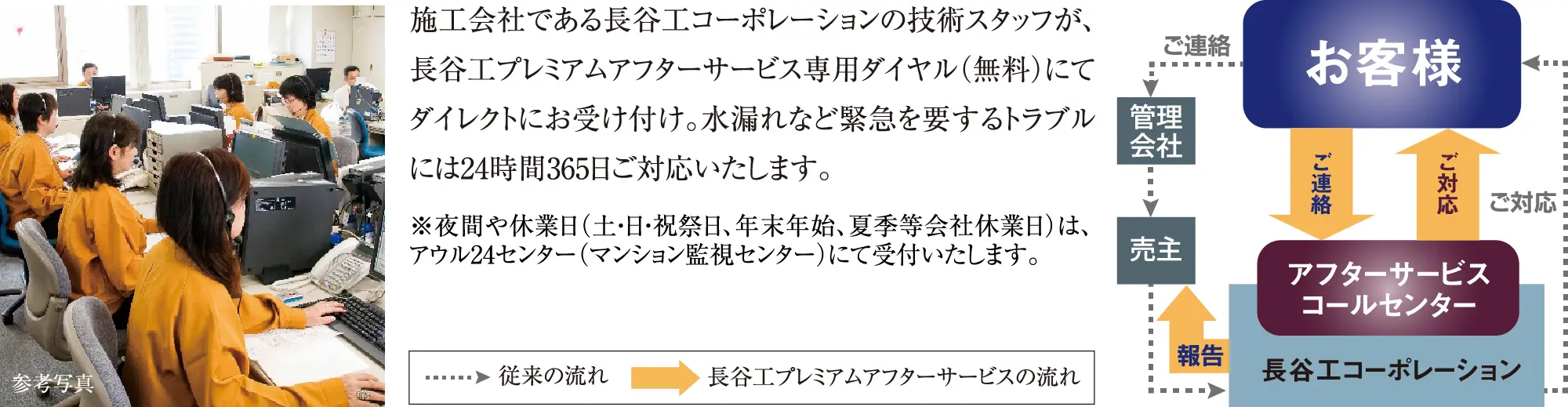 長谷工プレミアムアフターサービスは、マンションを施工した長谷工コーポレーションがお客さまからのご連絡をダイレクトにお受けする、