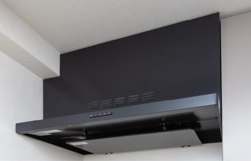 スタイリッシュなデザインのレンジフード。吸気効率を高める整流板はホーロー製で頑固な油汚れのお掃除も簡単です。