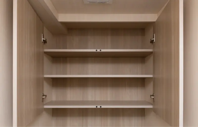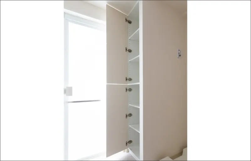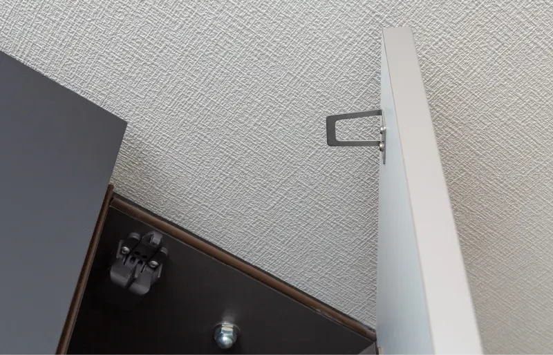 キッチンの収納力を高める吊戸棚には、地震の際、扉が開いて物が落下するのを防ぐ、耐震ラッチ付とし安全性を高めています。