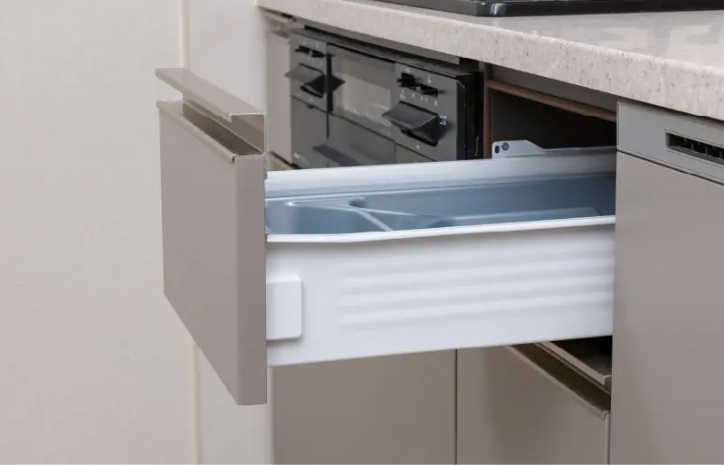 食後の後片付けを効率化し、食器の出し入れもスマートに行えるビルトインタイプを採用。節水タイプで経済的です。