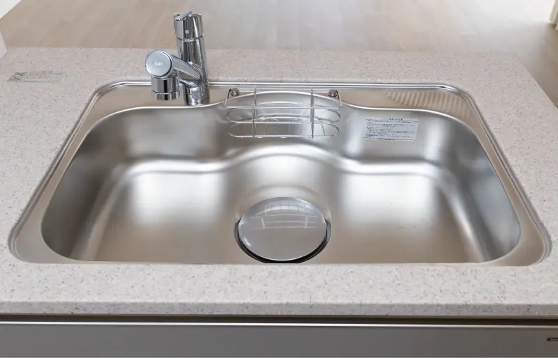 シンク裏面に制振材を貼ることで、シンクに水があたる音を低減する静音仕様シンク。中華鍋等も洗える大型シンクです。